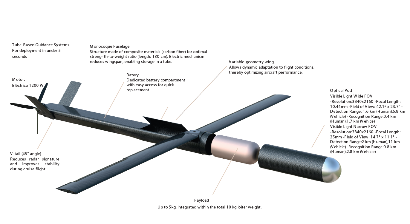 By reducing air resistance and minimizing wing surface during high-speed phases, the aircraft achieves a more aerodynamic profile, cutting through the wind. This versatility not only increa- ses speed but also enhances maneuverability and fuel efficiency, merging power and precision in a revolutionary design.